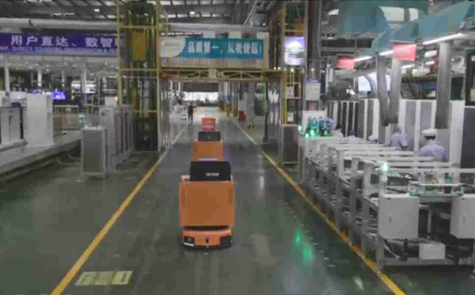 为车载冰箱物流配送打造的智能解决方案,,包含产中物流通过潜伏举升AMR搬运至线边,,,,产后成品物流智能仓储,,,流程包含产中物流智能齐套入库,,线边安灯叫料AMR智能配送至线边,,成品入库、、、出库,,,,通过无人堆高车机器人,,智能仓储管理替代人工作业管理,,,实现更高存储、、、更高效率、、、更具柔性化的解决方案。。。。